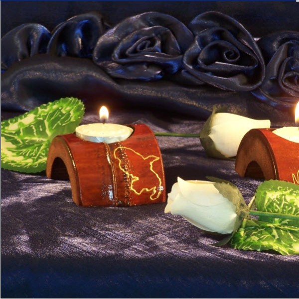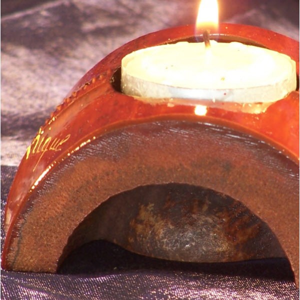Bougeoir taillé dans un noeud de bambou, rehaussé d'une très belle bougie de couleur.