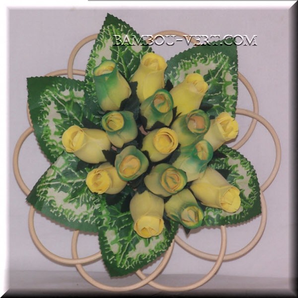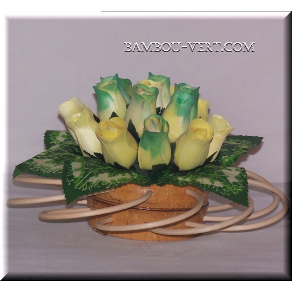 Un noeud de bambou sert de support aux fleurs et au rotin dont est orné l'ensemble.